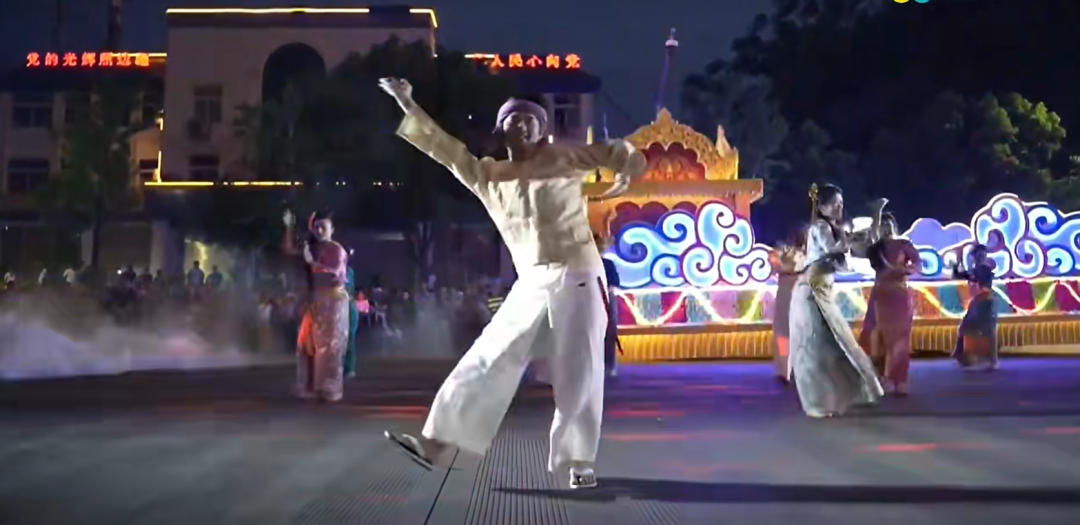 此外,象脚鼓舞、嘎秧舞民俗表演轮番上阵,载歌载舞,一路鼓声阵阵、欢歌笑语。灯光与民族服饰交相辉映,传统非遗与现代光影艺术碰撞融合,整条街道成为流动的文化长廊。